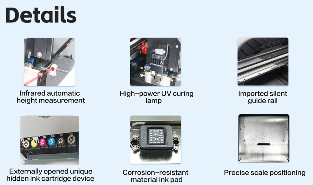 If you are looking for a small UV flatbed printer, desktop UV printer, A5 mini UV printer, phone case printing machine, or multi-purpose UV digital printing machine, this model combines efficiency, durability, and premium print quality to boost your business and expand your product range.