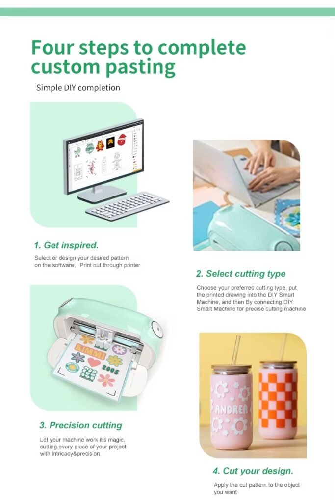 Can cut more than 300 popular materials (such as cards, vinyl stickers, heat transfer printing, etc.), automatic edge contour, precise cutting.